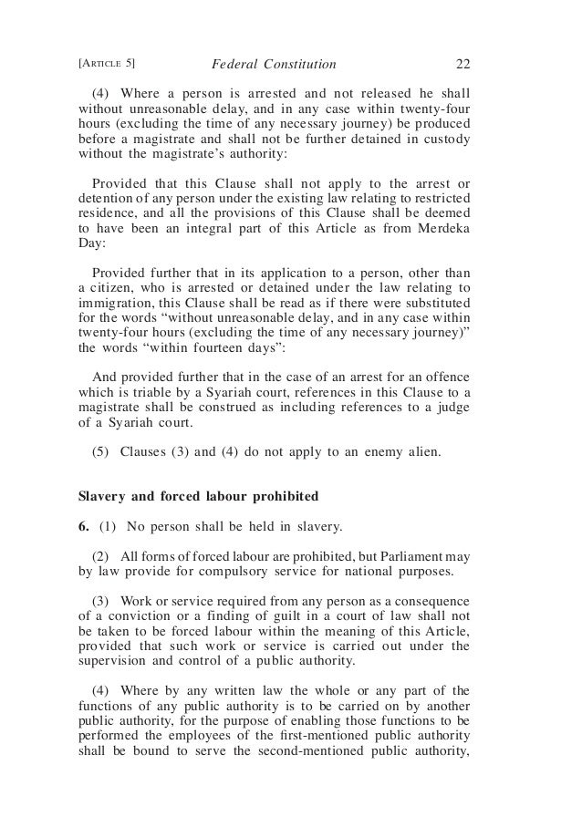 Article 4 of the constitution declares it simply. Supreme law of the federation pa r t ii fundamental liberties 5. However the freedom of speech and expression in malaysia is not absolute. 4 except as provided by this article land in a state which is reserved for federal purposes shall not cease to be so reserved and all land so reserved shall be controlled and managed by or on behalf of the federal government and the federal government may grant any right of occupation control or management or a tenancy or lease of the whole or any part of such land to any person.