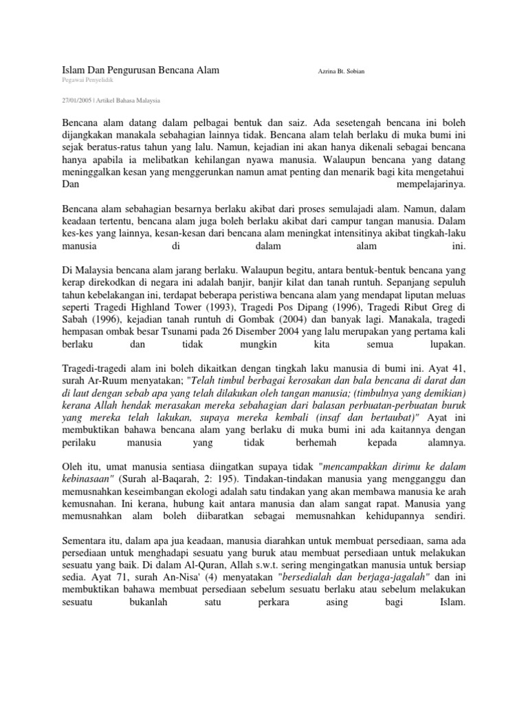 Artikel bencana alam di malaysia. Kodoatie psda terpadu fenomena banjir dan hakisan merupakan bencana alam yang berlaku hampir setiap tahun di kawasan pantai timur semenanjung malaysia. Di negeri kelantan taburan hujan pada bulan november hingga januari meningkat sehingga 1750mm. Jumaat 25 mei 2012 09 27 oleh saiful bahri kamaruddin bangi 23 mei 2012 seorang pakar geologi ukm mengingatkan rakyat negara ini supaya sentiasa berwaspada terhadap kejadian bencana alam yang semakin kerap berlaku walaupun malaysia tidak berada dalam lingkungan berapi pasifik seperti indonesia dan filipina. Apabila berdepan dengan kejadian itu saya tiba tiba menjadi blur dan tidak mampu berbuat apa apa padahal saya sudah didedahkan dengan langkah langkah berdepan bencana alam oleh pihak universiti sebelum ini.