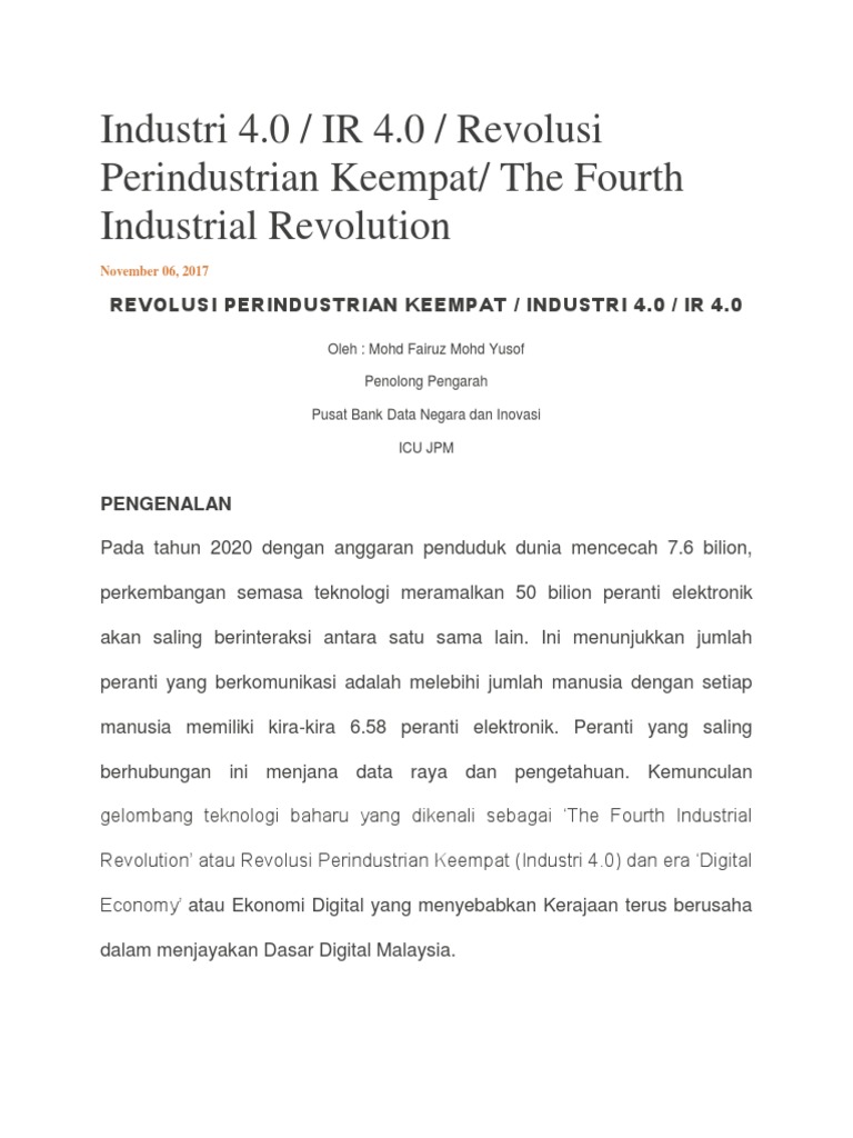 Cabaran Revolusi Industri 4 0 Pdf