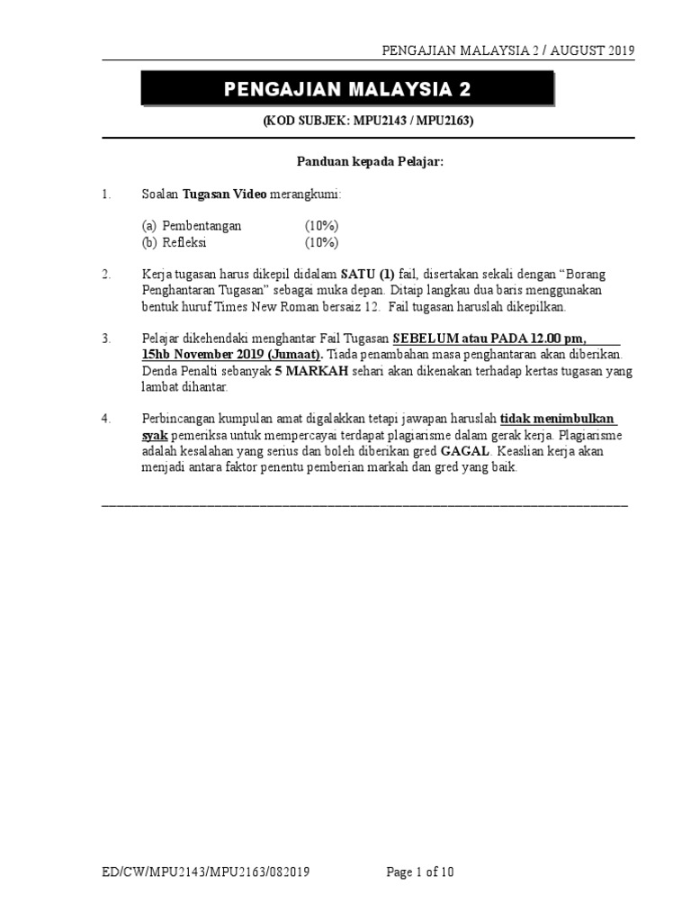 Contoh assignment pengajian malaysia 2. Gilbert low share to. Assignment dpi pengajian malaysia 2. Contoh tugasan untuk subjek mpu2163 pengajian malaysia open university malaysia slideshare uses cookies to improve functionality and performance and to provide you with relevant advertising. Hal ini kerana banyak perselisihan faham telah timbul antara kerajaan singapura dengan kerajaan persekutuan tanah melayu.