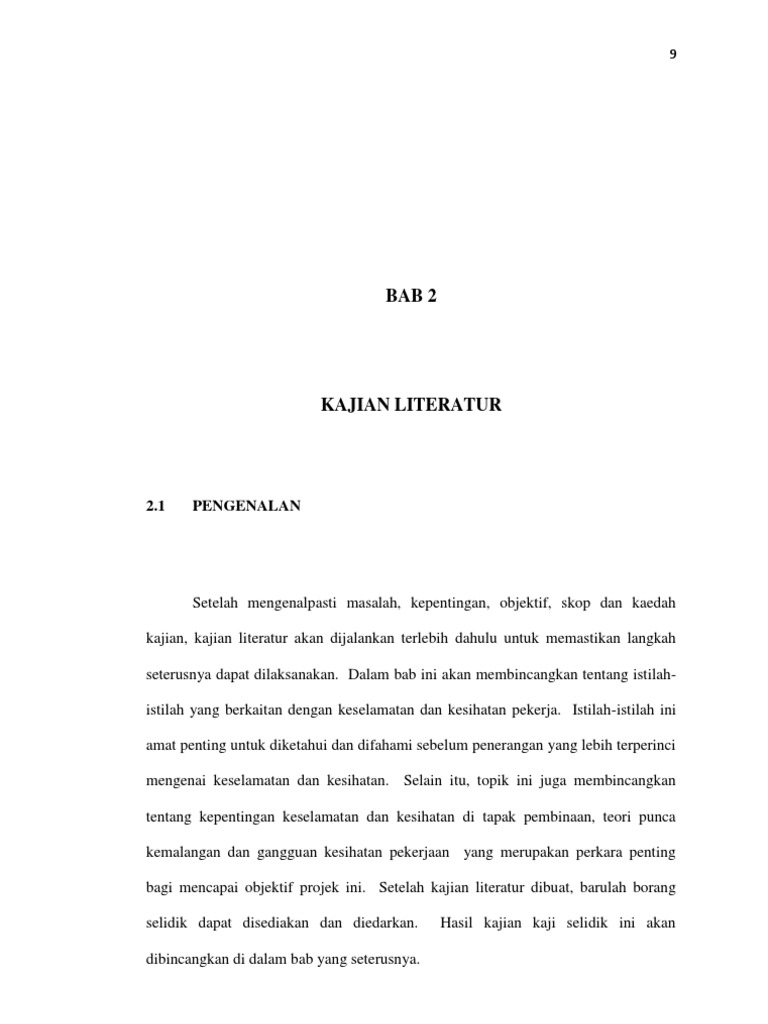Contoh bab 2 kajian literatur. Pembacaan yang kritis ini diperlukan supaya kajian yang dijalankan tidak berulang dan dapat mengisi kekurangan yang telah dihasilkan. Pertama bab ini akan melihat literatur berkaitan gelagat kepada latihan. Beberapa literatur akan digunakan sebagai asas kepada pembentukan model kajian. Kajian ini juga dikenali sebagai kajian lepas.