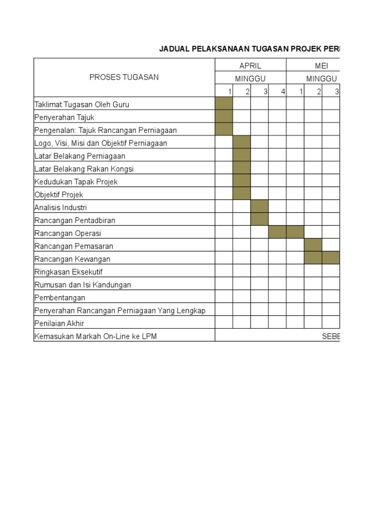 Share to twitter share to facebook share to pinterest. Contoh carta gantt 9 1 3 pengawalan. Carta gantt telah menjadi alat analisis kuat yang selama hampir 100 tahun tidak mengalami sebarang perubahan. Perancangan pelaksanaan februari mac april mei jun penerangan m1 m2 m3 m4 m1 m2 m3 m4 m1 m2 m3 m4 m1 m2 m3 m4 m5 m1 m2 m3 m4 mendapatkan maklumat keperluan dan kehendak tugasan.