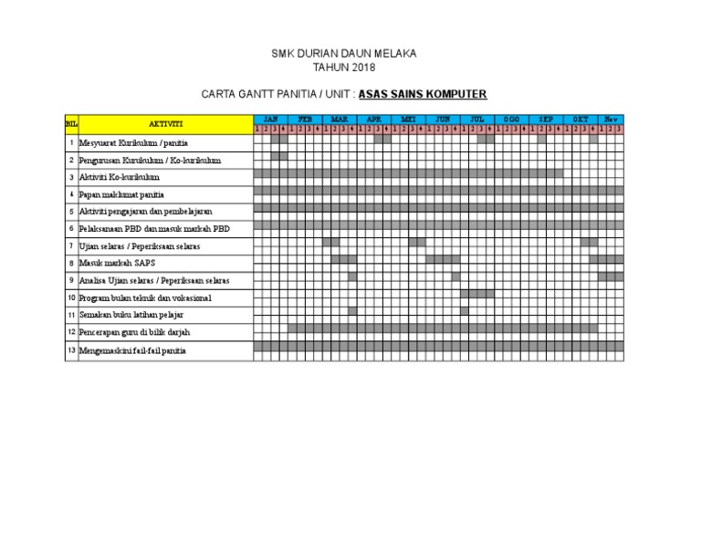 Contoh carta gantt projek ask. Kerja projek ask tingkatan 3 kerja projek ask tingkatan 3 telah bermula mac lalu dan akan berakhir pada ogos nanti. 2 0 carta gantt rujuk lampiran 3 0 fasa pembangunan atur cara pembangunan atur cara melibatkan lima fasa iaitu analisis masalah reka bentuk atur cara pengekodan pengujian dan penyahpepijatan serta dokumentasi. Kaedah perancangan ini tidak kehilangan kaitannya hari ini kerana ia membolehkan anda menyediakan paparan grafik rancangan pengeluaran memudahkan pemantauan kemajuan pelaksanaan tugas. Reka bentuk atur cara c.