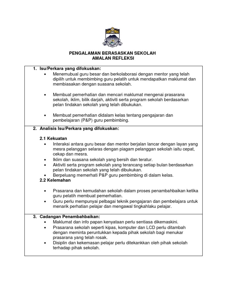 Contoh Laporan Pengalaman Berasaskan Sekolah