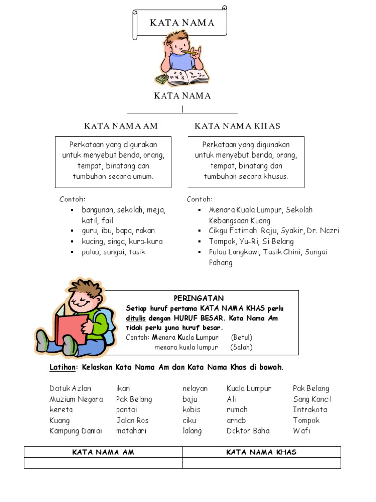 Contoh Latihan Kata Nama Am Dan Khas Tahun 1