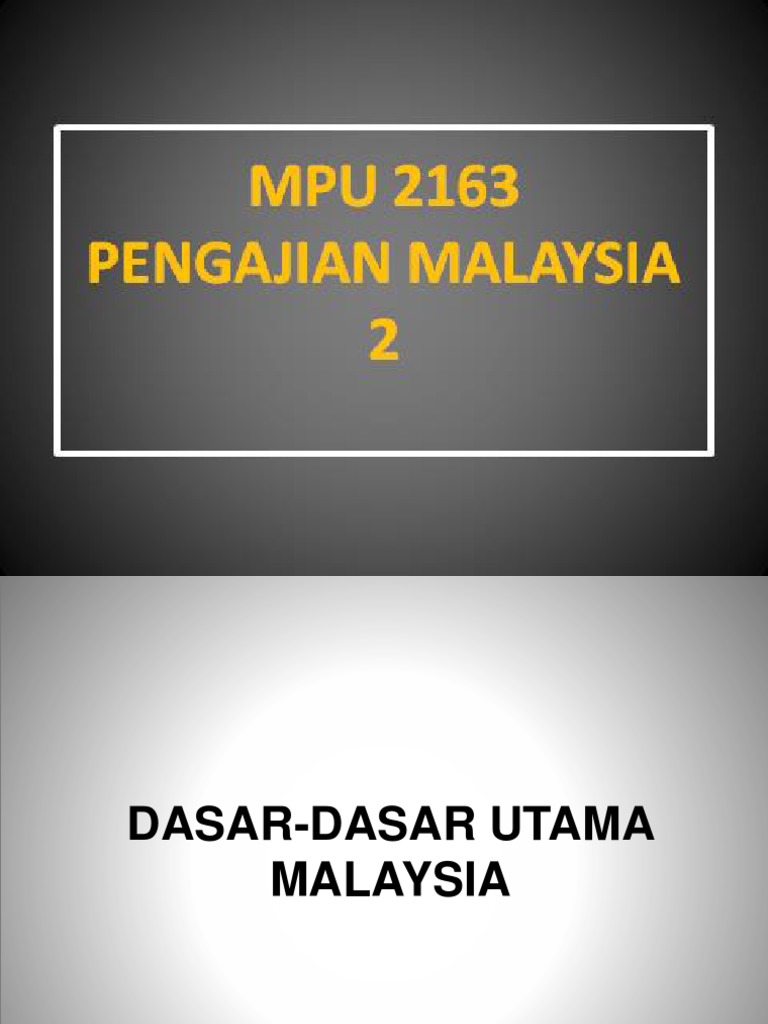 Pengajian malaysia course leader. Dasar dasar utama kerajaan elemen penting dalam sistem pemerintahan dan pentadbiran sesebuah negara. Bab 4 dasar dasar utama malaysia 11 1 dasar sosial 11 1 1 dasar kebudayaan kebangsaan 11 1 2 dasar belia negara 11 1 3 pelan integriti nasional 2 definisi dasar suatu kenyataan mengenai hasrat bagi mencapai sesuatu maksud atau kehendak. Pembentukan dasar dasar ini penting kerana bukan sahaja bermotifkan perpaduan rakyat malahan mencakupi semua aspek kehidupan dan kemanusiaan dalam negara.