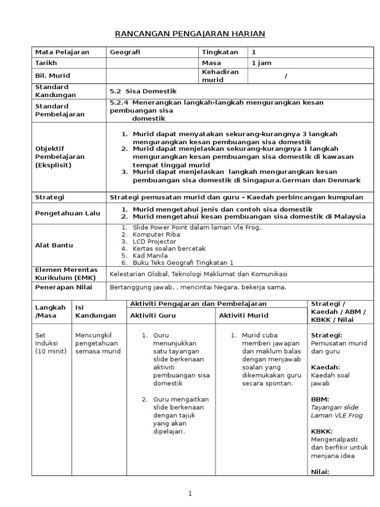 Geografi langkah langkah mengurangkan kesan pembuangan sisa domestik tingkatan 1. Langkah langkah mengurangkan kesan pembuangan sisa domestik tingkatan 1. Pihak berkuasa tempatan diberi kuasa untuk mengawasi aspek aspek alam sekitar di negeri masing masing termasuk mengambil langkah memperkenalkan pelbagai inisiatif dan pendekatan spt kempen kitar semula menguruskan sisa sistem pengumpulan dan penghapusan sisa pepejal dsb. Pada era globalisasi kini alam sekitar semakin mencemar oleh sebab sebab tertentu seperti pencemaran udara air tanah bunyi pembalakan haram dan lain lain. 1 penghargaan terlebih dahulu saya ingin merakamkan ucapan penghargaan saya kepada guru geografi saya puan ummi binti jusoh kerana sudi memberikan bimbingan dan tunjuk ajar dalam menjalankan kerja lapangan geografi tingkatan 1 ini.
