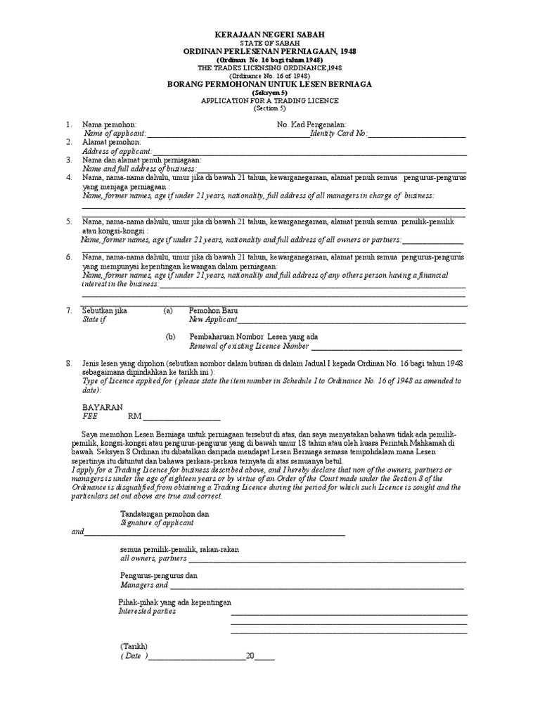 Jenis jenis permohonan. I trade licensing ordinan ce hanya. Apakah lesen berniaga dan lesen dewan bandaraya kota kinabalu lesen berniaga adalah lesen yang dikeluarkan di bawah ordinan lesen perniagaan 1948 cap 144. Rm50 00 dibayar selepas lesen diluluskan maklumat am.