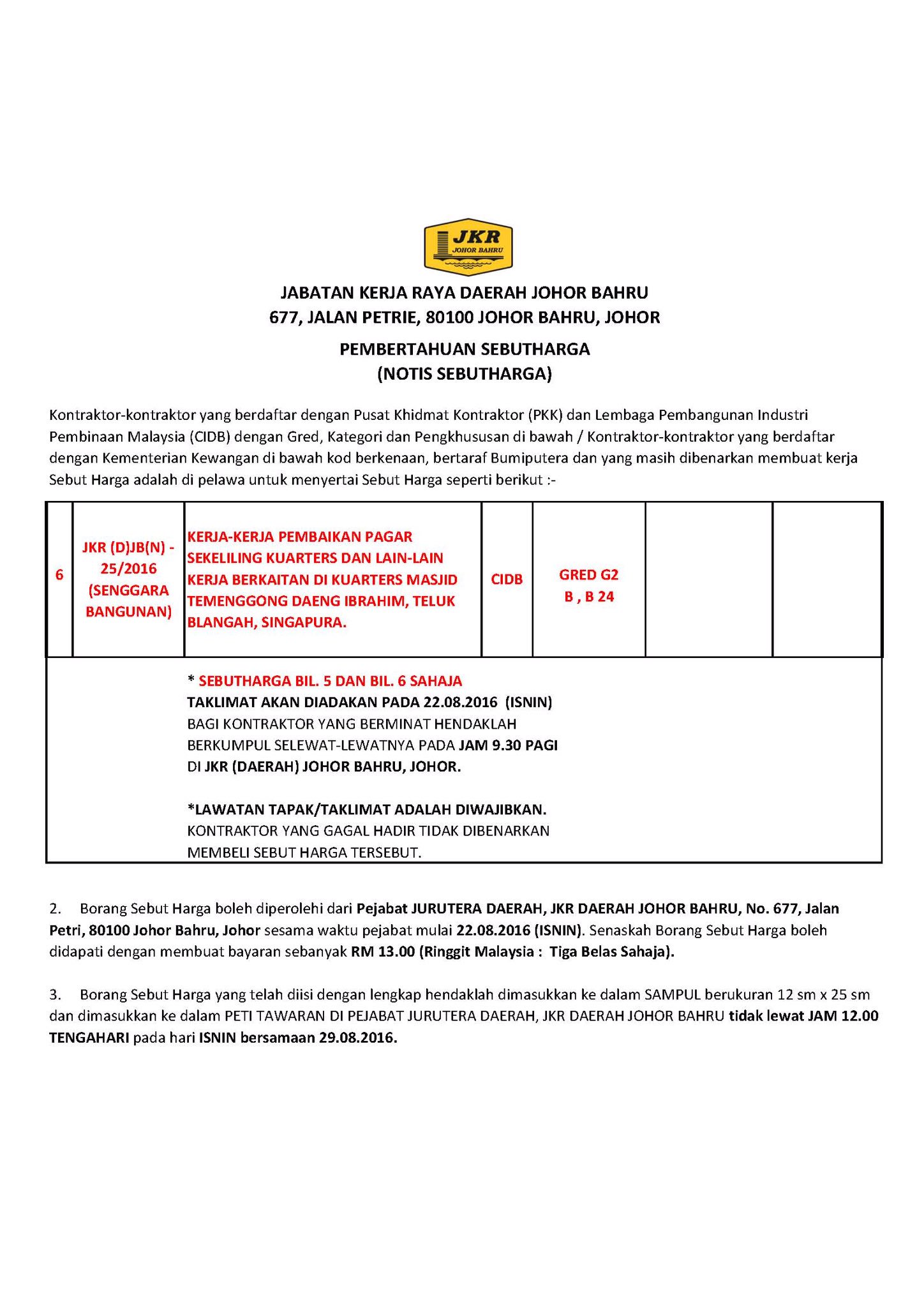Jkr daerah johor bahru sebutharga. Perniagaan tender sebutharga arkib tender sebutharga. Taklimat besama ketua pengarah jps malaysia september 14 2020. Pendidikan islam daerah johor bahru kerja menaiktaraf ruang pejabat dan sistem pe nghawa dingin serta kerja yang berkaitan di pejabat kadi daerah johor bahru kerja. Gemas bahru serta kerja kerja yang berkaitan.