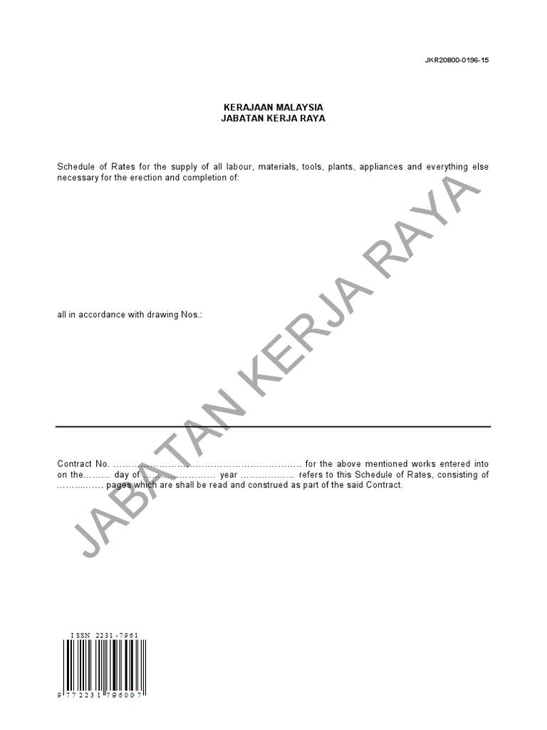 Schedule of rates for building works in sarawak 2016 jkr sarawak december 2016 notes to tenderers. 144 00 d ditto 62mm diamond mesh no 6m x 1 1800mm having three 3 strands of 2 ply barb wire 13 gauge with 4 pointed barb 75mm c c. Jkr20800 0196 15 kerajaan malaysia jabatan kerja raya ja r ay a schedule of rates for the supply of all. Please obtain the full set from the jkr sarawak webpage or any jkr sarawak office.