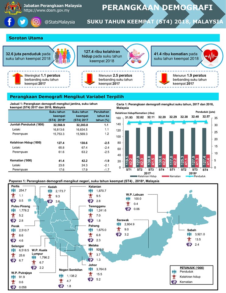 Jumlah rakyat malaysia 2017. The total fertility rate in 2016 is below the replacement level. Untuk tahun 2019 penduduk malaysia dianggarkan berjumlah 32 6 juta penduduk. In 2016 the total fertility rate per woman aged 15 49 was 1 9 babies a decrease from 2 0 babies 2015. 32 677 900 november 6 2020 0 39.