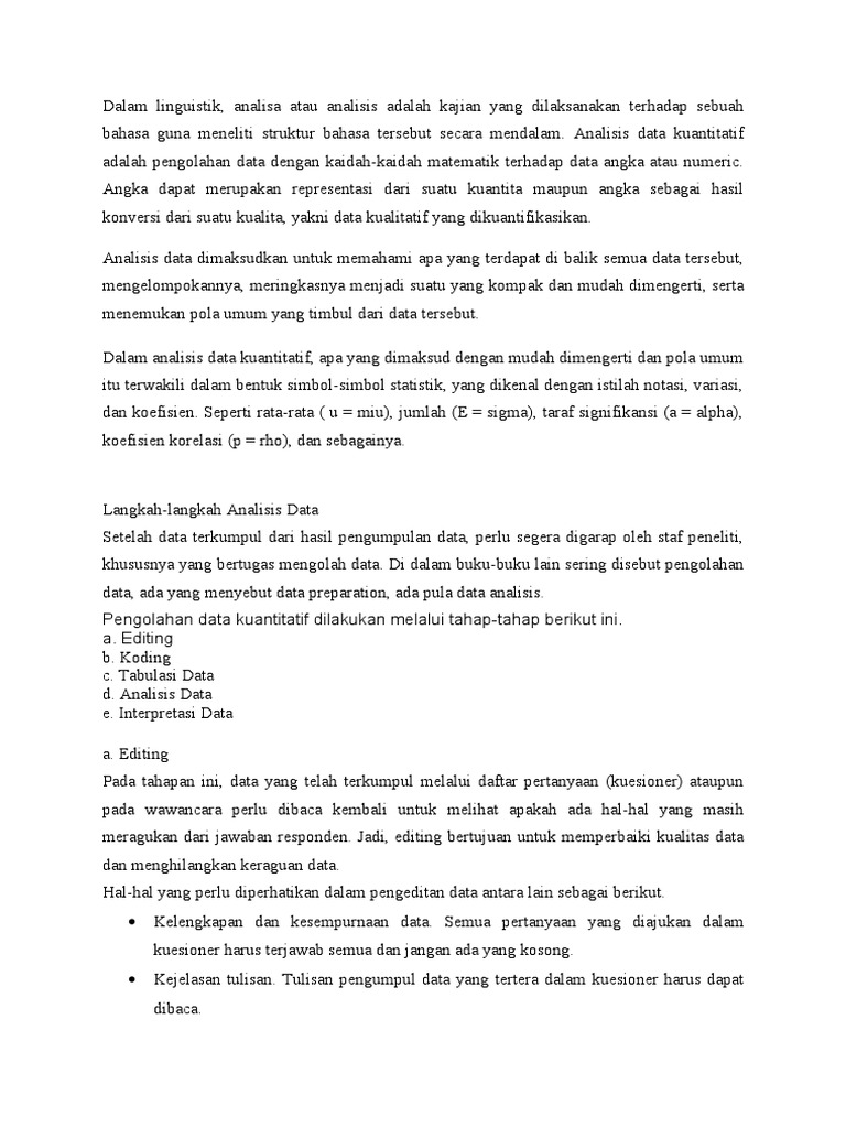 2 menggabungkan atau menghubungkan dua jenis data secara serentak dengan cara. Jenis analisis kuantitatif analisis kuantitatif yang biasa digunakan adalah analisis statistik. Jawatan ini akan menerangkan secara. Sajian data kuantitatif sebagai hasil analisis kuantitatif dapat berupa angka angka maupun gambar gambar grafik.