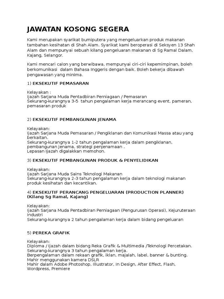 Juga sebagai tempat perkongsian ilmu. Kerja kilang di brunei jawatan kosong sandakan 2017. Tercatat dalam bulan nov 2020 iklan kilang panasonic shah alam ini lebih dari 1000 orang mencari infonya. Kami memberikan informasi seputar jawatan kosong spa kerani kastam mara tnb kemas.
