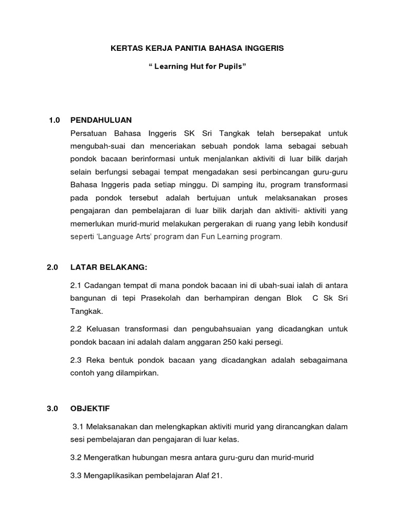Kertas kerja program bulan bahasa inggeris pada 12 2 2017 jumlah. I pelancaran bulan bahasa inggeris ii story telling competition iii spelling bee iv singing competition v english corner vi reading english story book camp. Contoh penggunaan untuk kertas di bahasa inggris. Kertas kerja program kecemerlangan pqs dan psi doc.