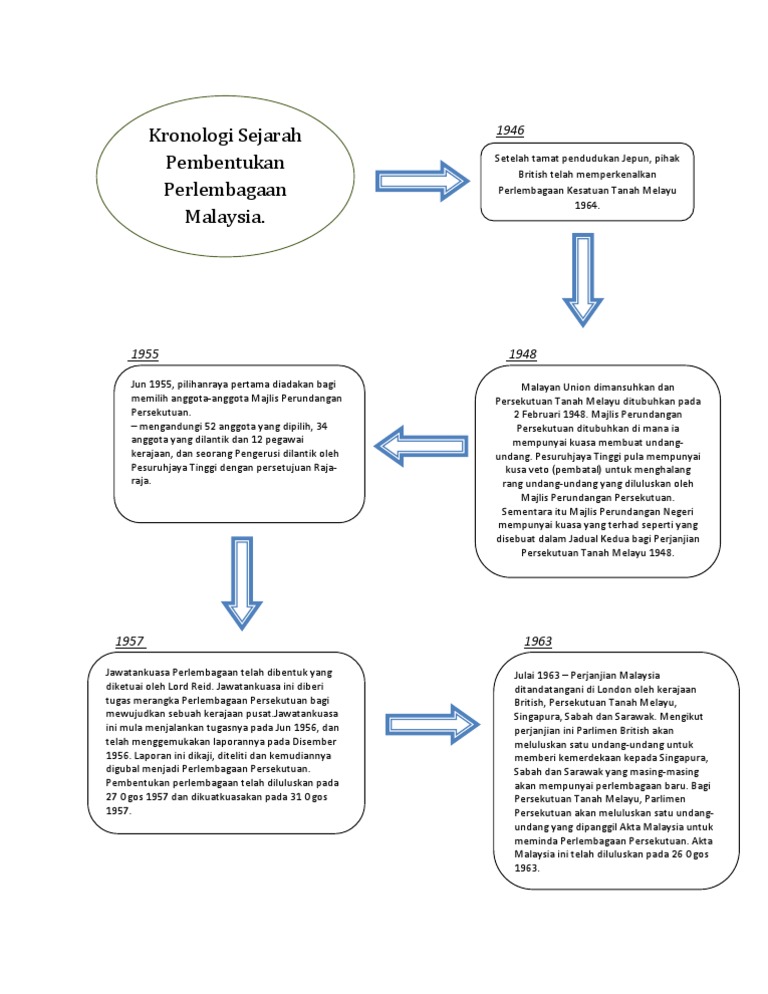 Kronologi pembentukan malaysia adalah seperti berikut. Kemudian ia telah diubah kepada perlembagaan persekutuan malaysia pada 16 september 1963. Tragedi terminal feri sultan abdul halim. Pembentukan malaysia telah melalui proses yang lama dan merumitkan.