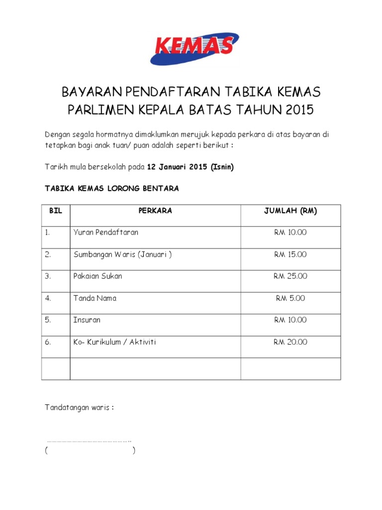 Permohonan tabika kemas 2020. Permohonan kemasukan ke tabika kemas tahun 2021 akan dibuka mulai jun hingga oktober 2020. Calon yang layak akan dipanggil ke proses temuduga. Permohonan guru tabika taska kemas secara atas talian adalah dibuka dari 26 disember 2019 khamis dan ditutup pada 9 januari 2020 khamis. Ap 1 tahun 2018 pengoperasian dan peraturan kutipan bayaran tabika dan taska permata kemas.