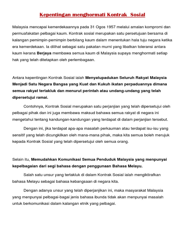 Ia merujuk bentuk permuafakatan yang ulung antara rakyat dan pemimpin bagi tiga kaum utama iaitu. Kontrak sosial merujuk kepada perjanjian yang telah ditandatangani oleh pemimpin pemimpin terdahulu dalam perlembagaan. Istilah kontrak sosial tidak terkandung di dalam perlembagaan. 5 hak kerakyatan dalam perlembagaan kerakyatan diberi kepada penduduk yang lahir dan bermastautindalam suatu tempoh tertentu hak kerakyatan perlembagaan persekutuan tanah melayu 1948.