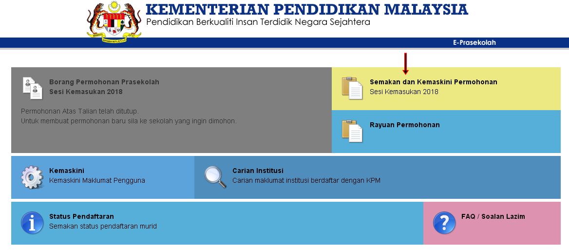 Permohonan kemasukan murid prasekolah kementerian pendidikan malaysia kpm sesi 2018 april 15 2017 by syazwan wanz vc row vc column 0 vc column text kementerian pendidikan malaysia kpm telah membangunkan aplikasi e prasekolah bagi memberi kemudahan kepada ibubapa untuk mendaftarkan anak jagaan mereka untuk memasuki pra sekolah. Perhatian buat ibu bapa dan penjaga yang telah membuat permohonan pendaftaran kemasukan anak ke pra sekolah kementerian pendidikan malaysia kpm. Ibu bapa atau penjaga yang telah membuat pendaftaran permohonan kemasukan murid ke program pendidikan prasekolah kementerian pendidikan malaysia kpm bagi sesi persekolahan tahun 2021 untuk anak jagaan secara online melalui sistem aplikasi e prasekolah ataupun secara manual melalui sekolah dimohon boleh mula membuat semakan keputusan tersebut mengikut ketetapan berikut.