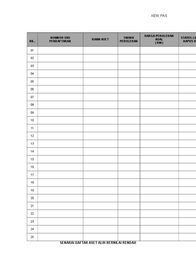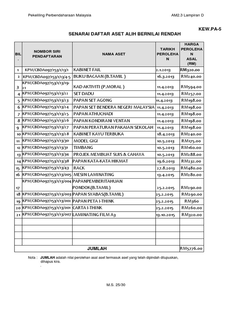 Jumlah adalah nilai perolehan asal aset termasuk aset yang telah dilupuskan dan dihapus kira. Senarai daftar aset alih bernilai rendah bil. Senarai daftar aset alih bernilai rendah bil. Br 5 kew pa 5 senarai daftar aset alih bernilai rendah bil.