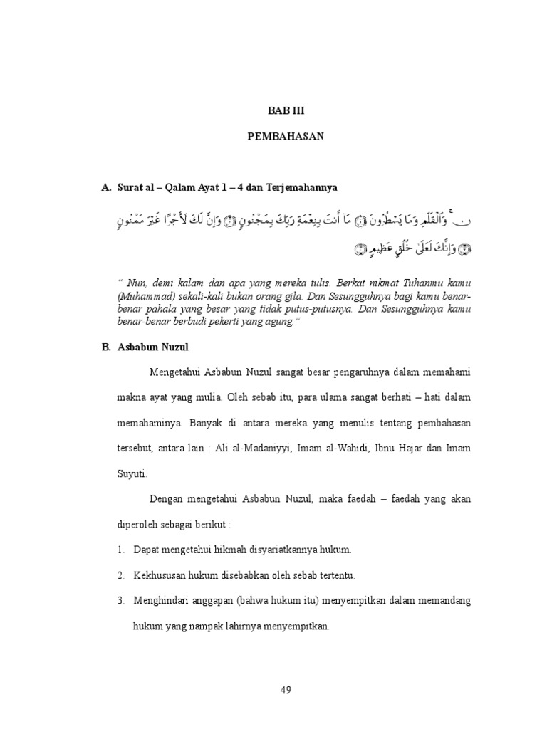 Surah al qalam ayat 1 4. Embed code copy semua kode yang terdapat di dalam textarea. Terjemah surat al qalam ayat 1 7. Ibnu juraij mengatakan bahwa ia pernah mendapat berita bahwa qalam tersebut dari nur yang panjangnya sama dengan jarak perjalanan seratus tahun. 1 bahwa al qalam adalah lembaran dari cahaya dan pena dari cahaya yang bergerak mencatat segala sesuatu yang akan ada sampai hari kiamat.