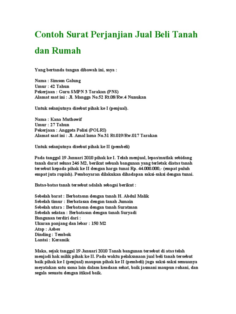 Surat perjanjian jual beli tanah dan bangunan adalah surat yang berisi tentang kesepakatan anatara penjual dan pembeli atas tanah atau bangunan yang diperjualbelikan. Related posts to contoh surat akta jual beli tanah dan bangunan contoh surat akta jual beli tanah dan bangunan 2018 04 17t17 19 00 07 00 rating. Contoh surat perjanjian jual beli tanah dan rumah malaysia have an image from the other contoh surat perjanjian jual beli tanah dan rumah malaysia in addition it will feature a picture of a kind that may be observed in the gallery of contoh surat perjanjian jual beli tanah dan rumah malaysia. Namun pada umumnya hal pernyataan pembebanan biaya ini dibebankan pada pihak kedua atau pembeli.