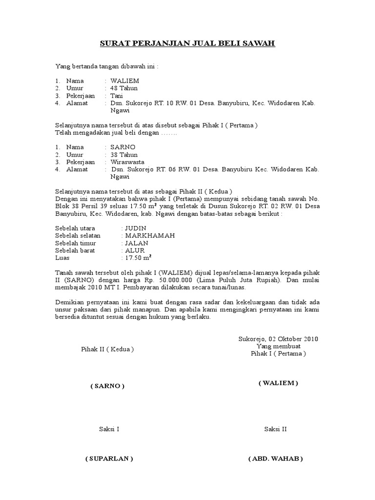 Surat perjanjian jual beli tanah sawah. Download view contoh surat minat beli tanah as pdf for free. Surat pernyataan jual beli tanah december 2019 123. Contoh surat perjanjian jual beli tanah terbaru 2019 contoh surat perjanjian jual beli tanah.