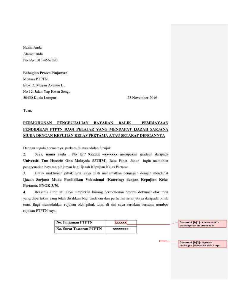 Surat rayuan pengecualian bayaran balik ptptn. Peminjam perlu memohon secara online di portal ptptn pengecualian ijazah kelas pertama selewat lewatnya dalam tempoh 12 bulan daripada tarikh konvokesyen. Since ada beberapa orang kawan tanya tentang contoh surat rasmi yang perlu dibuat oleh pelajar untuk memohon pengecualian bayaran balik ptptn so saya letakkan je pada entri kali ni. Surat pengesahan tamat pengajian jika tidak dicatatkan tarikh tamat pengajian pada ijazah transkrip. 6 dokumen pendapatan ketika memohon pengecualian bayaran balik mengikut kategori yang ditetapkan.