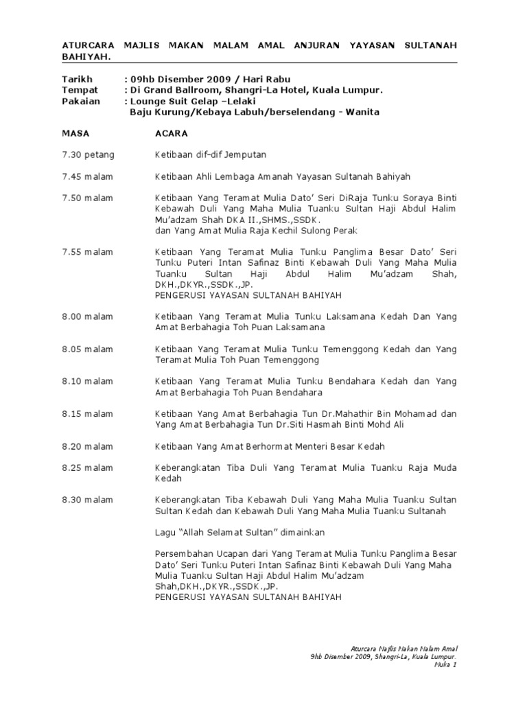 Pastikan anda tahu siapa yang hadir terutamanya vvip dalam majlis tersebut. Aturcara majlis makan malam tahunan dental glam night 2010. Untuk aturcara majlis perkahwinan di dalam dewan nie kalau boleh lantik seorang yang khas untuk aturkan majlis ini. Negaraku dan menara ilmu bacaan doa ucapan aluan y.